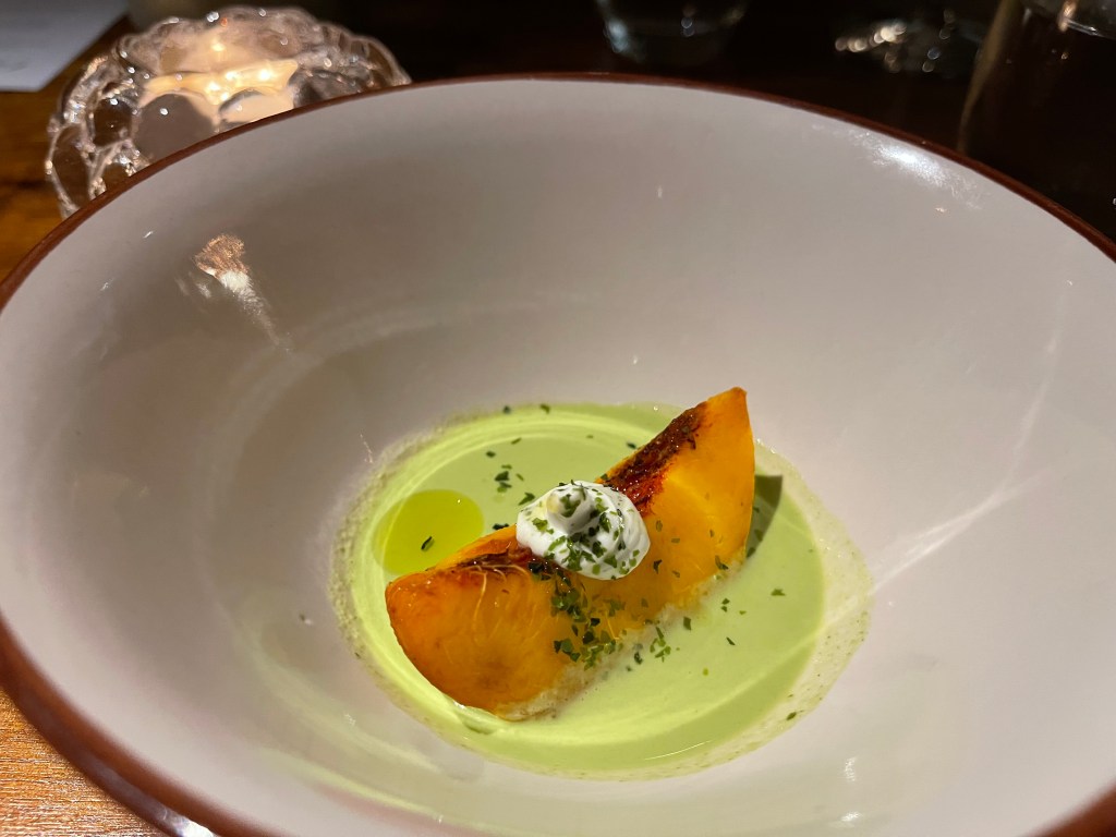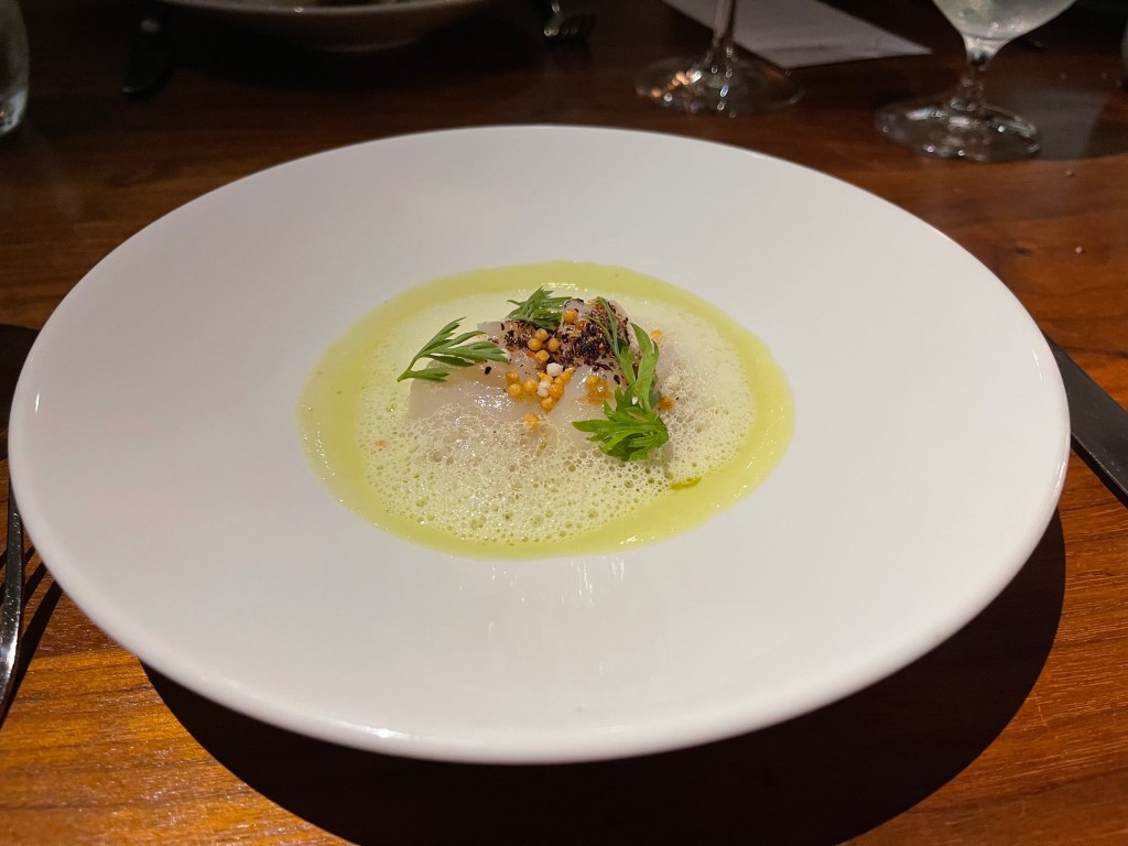 About this time, you might expect several complements from the chef througout this point of dining. This specific plate featured a Japanese shishito pepper soup
