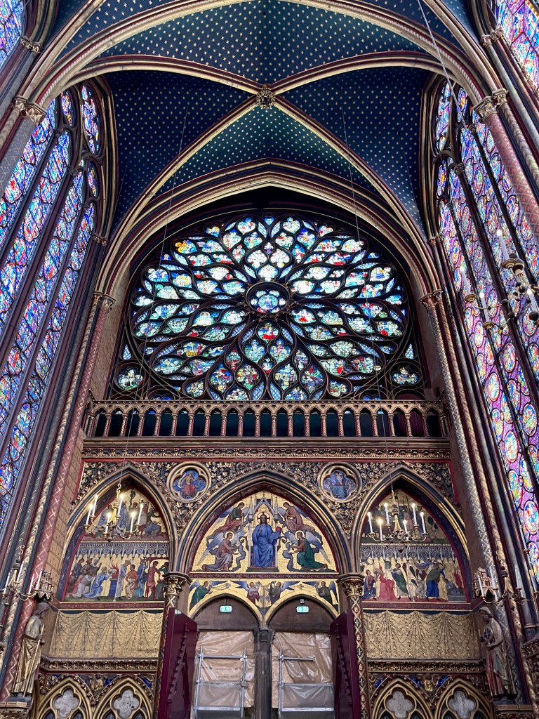 Ok… SECOND DAY. We went to that island in the middle of Paris with all of the crazy old stuff. We got a taxi to Pont Neuf, the oldest bridge in Paris (see the stereotype? Everything here is old). We ran across the bridge towards Sainte Chapelle since we were late for our reservation, which was this popular stained glass place that was super shiny and colorful *and old.
